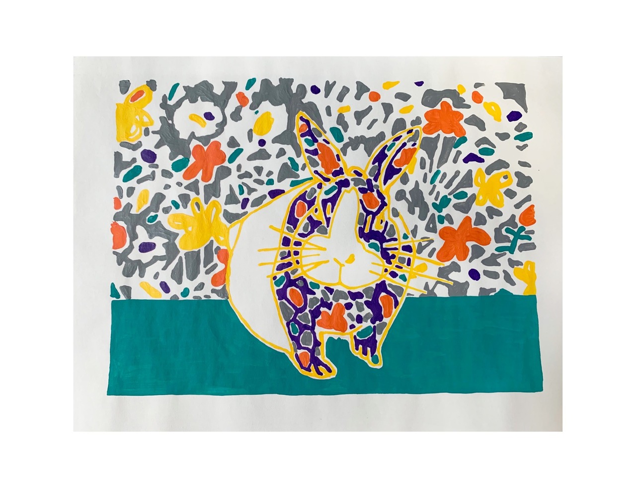 iracchiならではの個性あふれるカラーと手描きタッチの愛らしいうさぎ柄の半袖Tシャツです。
